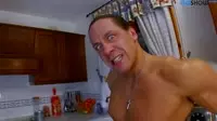 In the passionate clip, the long-haired brunette seductively leans against the kitchen counter as her lover, sporting a sultry smirk, prepares to initiate their explicit lovemaking session.He tenderly unbuttons her blouse, revealing her erect and engorged nipples begging to be sucked on.The steamy atmosphere thickens, as they share a passionate kiss which rapidly transitions into an animalistic embrace, the sound of flesh smacking against flesh filling the room with animalistic fervor.As he slides off her bikini bottom, exposing her lusciously shaven cunt, she moans with anticipation, her hands clawing at his chest as their mouths lock once again in an unyielding passionate embrace.He drives his rock-hard cock deep inside her wet pussy, sending shivers down the length of her spine.Their bodies sway together in a choreographed dance of desire, as their moans fill the air, intertwining in a harmonious crescendo of carnal satisfaction.The kitchen transforms into a fervent playground for their insatiable lust, the smell of arousal and sweat heavy in the room.As the blonde kneels before her lover, the brunette slides off her own bikini bottom, displaying her eager cunt ready for penetration.She lowers her mouth onto his throbbing member as he looks on, captivated by their newfound love language, a melodic tune of pleasure and passion resonating through their veins.Her lover moves behind her, readying himself to penetrate not just one, but both of her holes in a tantalizing display of skillful prowess.The room echoes with their lustful moans as he ravages her from behind while her tongue expertly laps at his glistening tool.The brunette's nipples and clit throb, desperate for relief from the intensity of the moment, as she struggles to maintain her composure in this unexpected situation.The lovers' bodies contort with each thrust, every caress, and passionate bite - an intricate tapestry of carnal desires woven into existence.Finally, the brunette's cunt can no longer contain the waves of pleasure coursing through her, and she arches her back, giving in to the animalistic need to climax.Her lover catches her fall, his own orgasm imminent as he delivers the final thrust before filling both of her hungry holes with his hot load.The brunette's body quivers in a frenzy, the kitchen walls closing in on them in a vortex of passion, leaving them breathless and satiated.